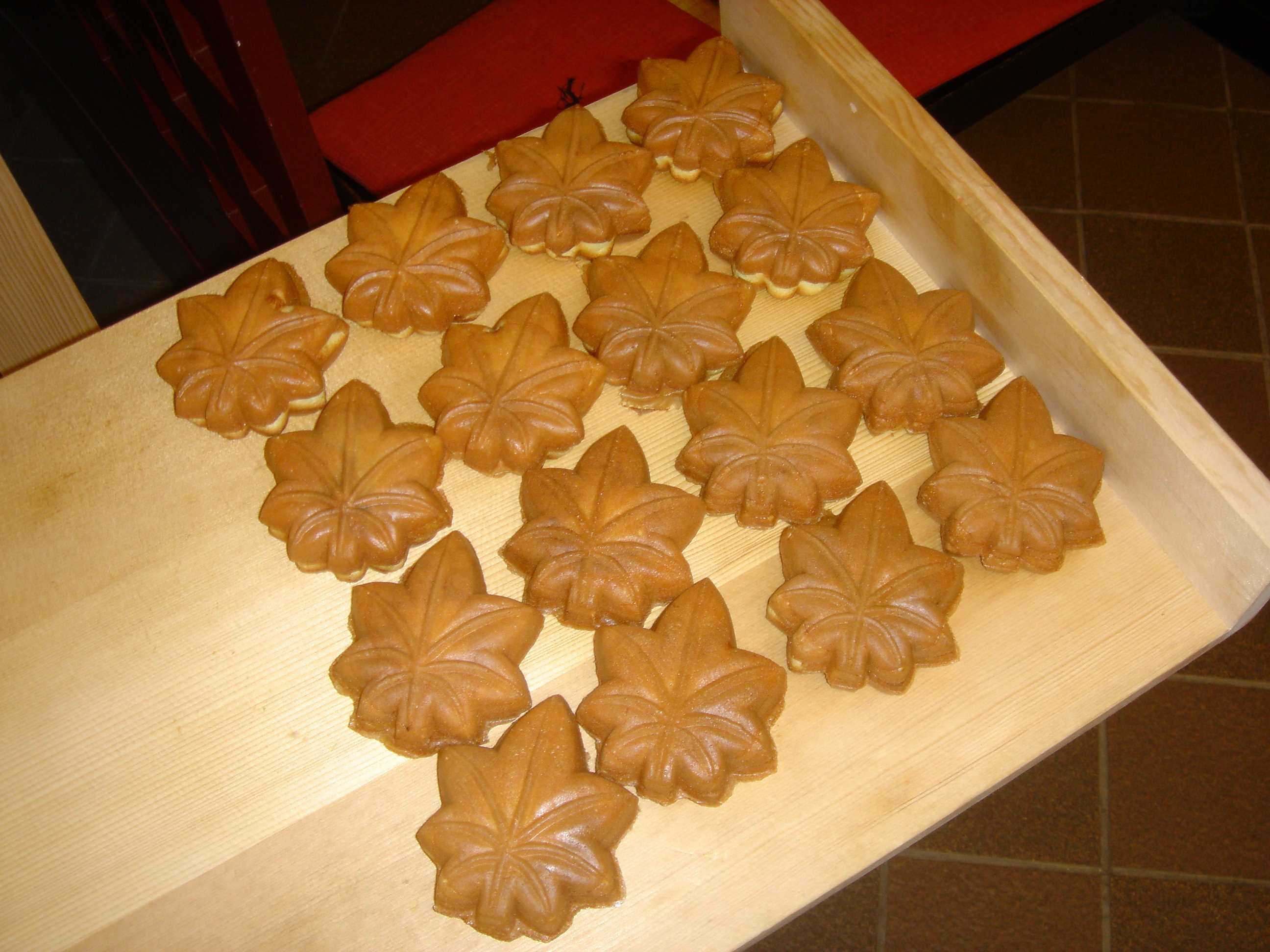 宮島のお土産というと、もみじまんじゅうかお杓子が有名です。中でも、最もポピュラーなのが、もみじまんじゅうです。もみじの形をしたおまんじゅう。誰もが一度は食したことがあるのではないでしょうか?私は昔から甘いものが好きで(御酒も大好きなのですが)、特に中でも和菓子、あんこを使ったものが好きです。そんな私にとって、宮島のもみじまんじゅうは大好物です。行った時は必ず出来たてのもみじまんじゅうを食べます。そして、おみやげに少々持ち帰ります。持ち帰ったもみじまんじゅうは私の朝ご飯になったりするわけですが。