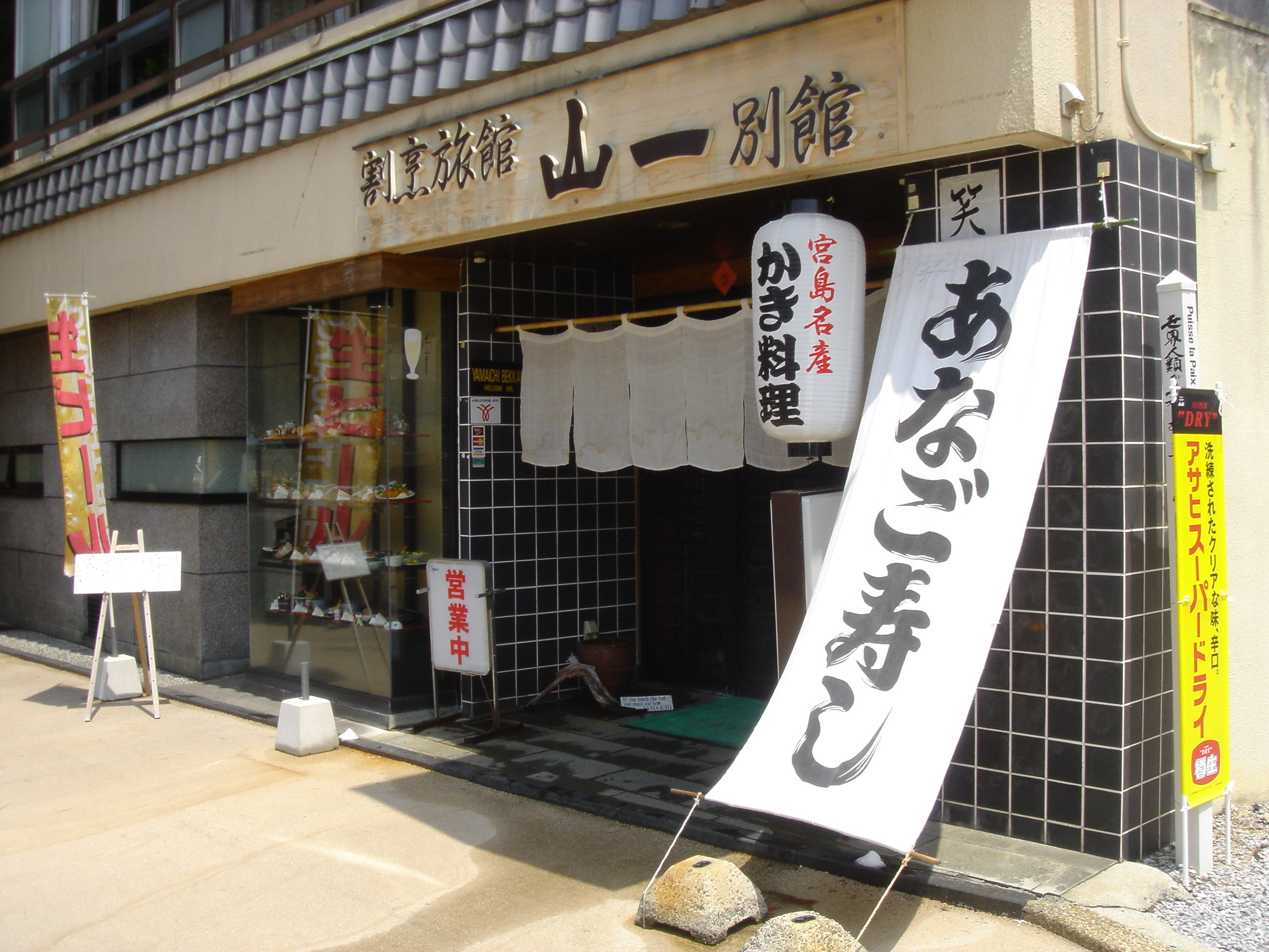 ただ、旅館というと二名以上で泊まるというのが普通で、私のように一人で行くとなかなか泊まるところを探すのが難しいと思います。特に、観光地ではビジネスホテルのようなものもなく、何より、折角宮島に行ったのだから、おいしいものを食べて、雰囲気を味わいたい。そんな人達にお勧めなのが、私が常宿にしている山一別館です。宮島桟橋を降りて、すぐのところに位置する御宿です。部屋は四部屋しかない小さな旅館ですが、女将はとても気遣いしてくれる人で、スタッフの方も良い人たちばかりです。宮島ならではの穴子、牡蠣、あさりなどなどおいしい料理を食べさせてくれます。どの料理もお勧めですが、中でも穴子寿司は山一別館オリジナルでお勧めです。一人でも泊まらせてくれて、少しのわがままなら聞いてくれる、サービスの行き届いた御宿です。また、女将が英語を話すことから、外国人のお客さんが多いのも特徴です。
